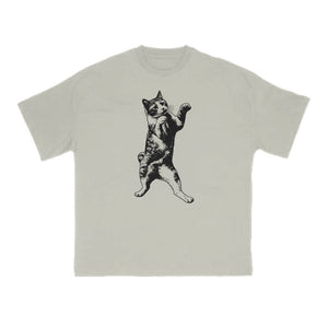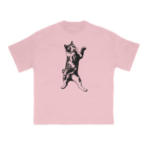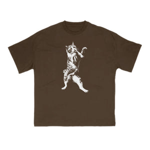 Funny Fighting Cat Print T-shirt