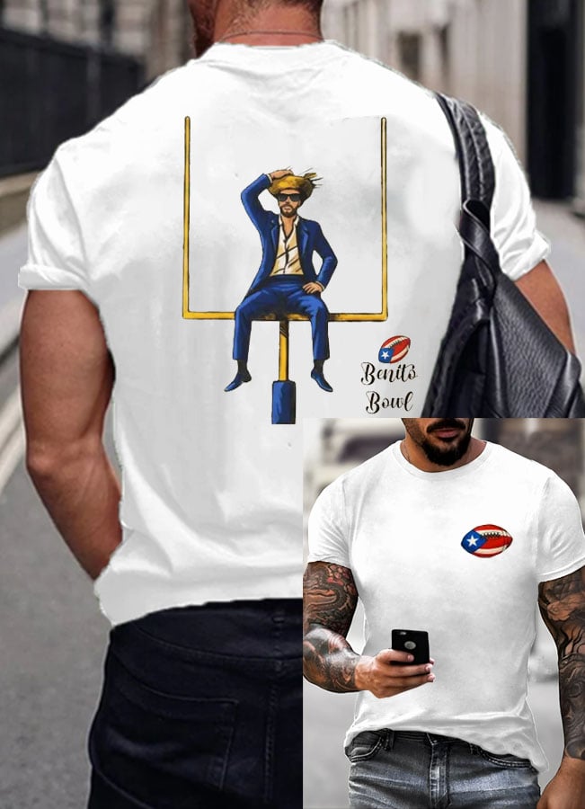 Men's Bunny Football Music Lover Print Casual T-Shirt