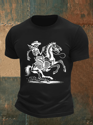 Men's Cowboy Skull FDT Print Casual T-shirt