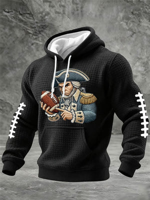 Men's Football Print Checkered Fabric Hooded Sweatshirt