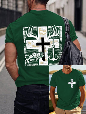 Men's Retro Faith Fishing Hunting Print T-Shirt