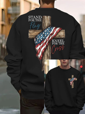 Men's Stand For The Flag Kneel For The Cross Print Casual Sweatshirt