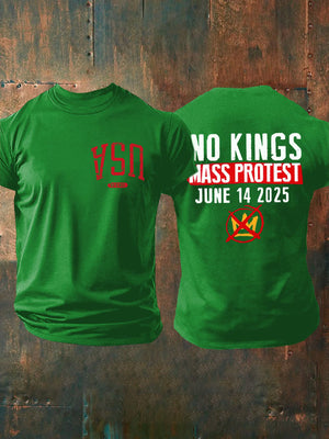 Retro Man's Upside Down USA No Kings Mass Protest June 14 2025 Print T-Shirt