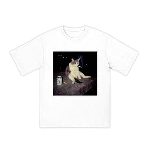 Unisex Smoking Decadent Cat Print T-shirt