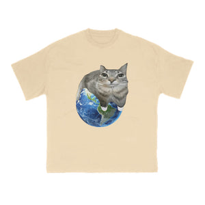 Unisex Cat Taking Over The Earth Print T-shirt