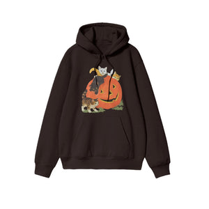 Unisex Cats Playing On Pumpkins Halloween Print Hoodie