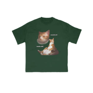 Unisex "Mentally Ill Totally Chill" Fun Cat Pattern Print T-shirt