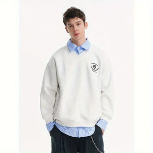 Unisex retro-style faux two-piece plaid patchwork collared sweatshirt