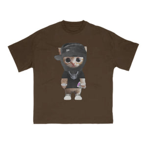 Unisex Street Style Cat Print T-shirt