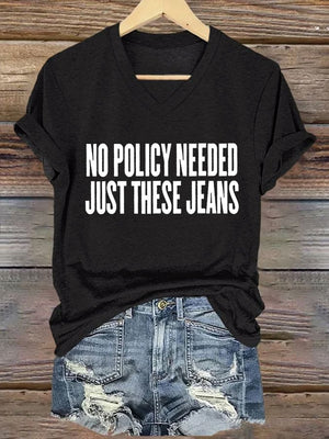 V-Neck Retro No Policy Needed Just These Jeans Print T-Shirt