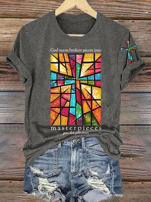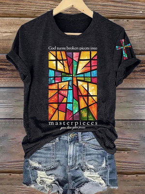 Women's God Turns Broken Pieces Into Masterpieces Print T-shirt