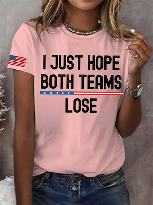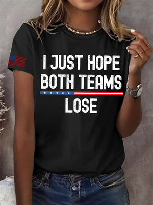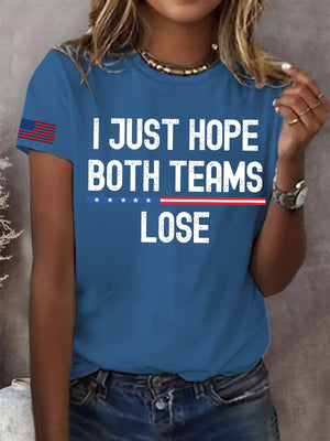 Women's I Just Hope Both Teams Lose Print Round Neck T-Shirt
