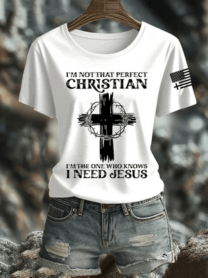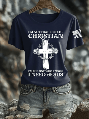 Women's I'm Not That Perfect Christian I Know I Need Jesus Print Shirt