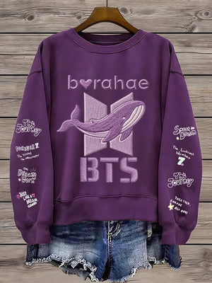 Women's K-pop Printed Long-Sleeve Sweatshirt