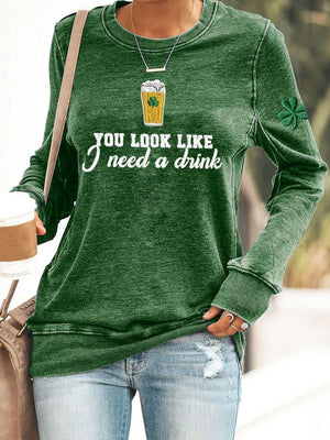 Women's You Look Like I Need A Drink Print Casual Sweatshirt